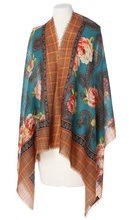 Szalik Szal Laura Verdiani 70x180 Wełniany w Kwiaty Folk morski