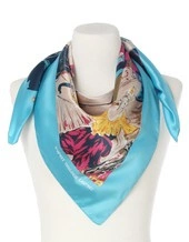 Chusta niebieska Apaszka wzorzysta Satynowa Włoska 90x90cm Chusty Apaszki
