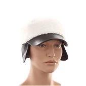Włoska piękna czapka uszatka z daszkiem kremowa z czarnym daszkiem wełna + ekoskóra