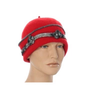 Kobieca czapka ciepła zimowa Laura Verdiani włoska wełna czarno czerwona