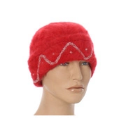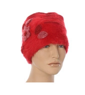 Włoska ciepła elegancka czapka zimowa z angory miękka damska czerwona