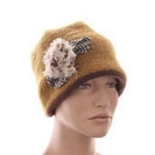 Włoska czapka damska na zimę Angiolo Frasconi wełniana musztardowa