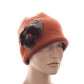 Włoska czapka na zimę Angiolo Frasconi ciepła wełniana ruda pomarańczowa