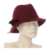 Włoski wełniany filcowy kapelusz damski z rondem bordowy