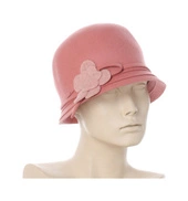 Wełniany filcowy kapelusz damski antyczny pudrowy różowy