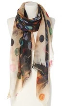 Szal wełniany haftowany Laura Verdiani Premium 70x180 100% Wełna Koła beżowy kremowy