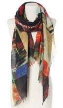 Wełniany elegancki Szal patchwork duża Chusta Laura Verdiani 70x180 rudy kolory jesieni