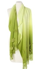 Ciepły okryciowy szal z pomponami 60x190cm akryl z królikiem zielony cieniowany