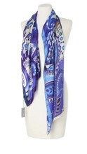 Włoski jedwabny duży szal do sukienki Marina D'Este 45x150cm 100% jedwab silk seta Print