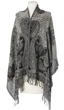 Ekskluzywny Wełniany Duży Szal Chusta czarna Premium Laura Verdiani 70x180cm Nadruk