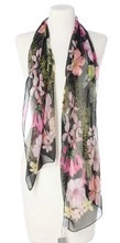 Duży Jedwabny Szal damski czarny do sukienki Marina D'Este 70x180cm Jedwab Silk Kwiaty