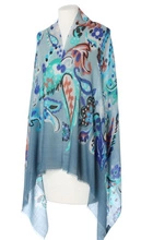 Patchworkowy Szal duży damski Laura Verdiani 70x180 Wełna z Jedwabiem niebieski