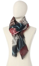 Włoski lekki szal szalik biały czerwony 45x160cm do koszuli i sukienki jak mgiełka