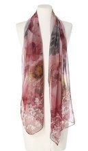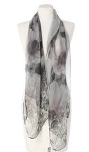 Jedwabny Szalik damski szary do sukienki w kwiaty 50x170cm Mgiełka Jedwab Szyfonowy