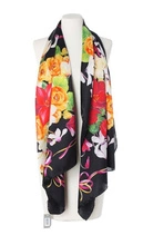 Jedwabny włoski duży szal czarny Marina D'Este 70x180cm 100% jedwab silk kwiaty