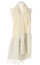 Wełniany elegancki kremowy szal Laura Verdiani 35x180cm Wełna Lurex kremowy ecru