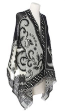 Szal Zdobiony Cekiny i Hafty Laura Verdiani 70x180 Wełniany Pepitka