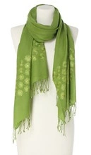 zielony wełniany szal z haftami Laura Verdiani 65x190cm duża elegancka chusta