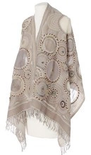 Szal wełniany haftowany Laura Verdiani Premium 70x180 100% Wełna Koła beżowy kremowy
