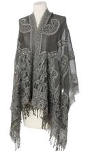 Szal Zdobiony Cekinami Laura Verdiani 70x180 100% Wełna popielaty