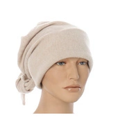 Włoska piękna czapka beżowa Angiolo Frasconi wiązany tył wełna