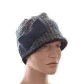 Włoska zimowa ciepła czapka z wełny damska na jesień zimę granatowa denim pantera