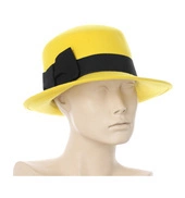 Włoski wełniany filcowy kapelusz damski kanarkowy żółty czarna taśma