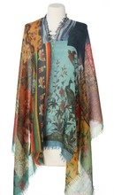 Piękny duży folkowy szal wełniany Jak obraz Duża kolorowa chusta do sukienki Laura Verdiani Ogród Edenu