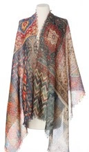 piękny Szal całoroczny z lekkiej wełny duża Chusta kolorowa wełniana włoska