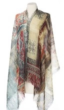 piękny Szal całoroczny z lekkiej wełny duża Chusta kolorowa Laura Verdiani do sukienki mix wzorów