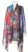 Wełniany Duży Szal Szalik Laura Verdiani 70x180cm w Kwiaty kolorowy
