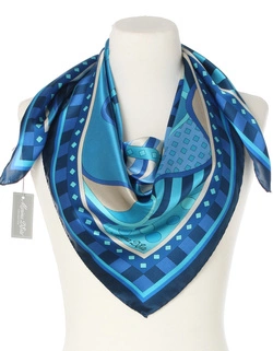Ekskluzywna apaszka z jedwabiu chusta włoska Marina D'Este 90x90 Italian Silk turkusowa niebieska