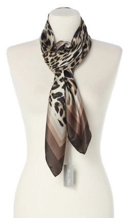 Ekskluzywna apaszka z jedwabiu chusta włoska w cętki pantera Marina D'Este 90x90 Italian Silk Animal Print