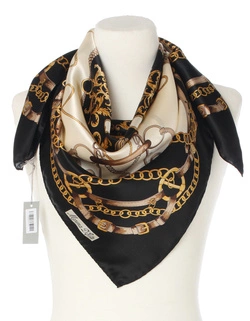 Ekskluzywna apaszka z jedwabiu chusta włoska w łańcuchy Marina D'Este 90x90 Italian Silk kremowo czarna
