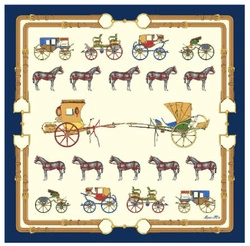 Ekskluzywna kremowa apaszka z jedwabiu chusta włoska Marina D'Este 90x90 Italian Silk karoce konie