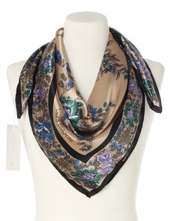 Kwiatowa jedwabna apaszka chusta włoska Laura Biagiotti 90x90 Italian Silk beżowa