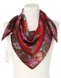 Kwiatowa jedwabna apaszka chusta włoska Laura Biagiotti 90x90 Italian Silk czerwona bordowa