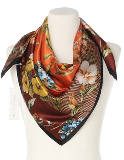 Kwiatowa jedwabna apaszka chusta włoska Laura Biagiotti 90x90 Italian Silk pomarańczowa brązowa