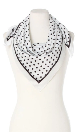 biała Chusta Apaszka w czarne groszki Włoska 90x90cm elegancka