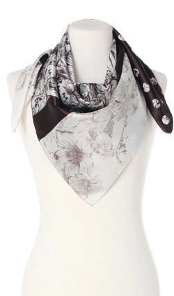 czarno biała Chusta w kwiaty i grochy Apaszka Włoska 90x90 elegancka