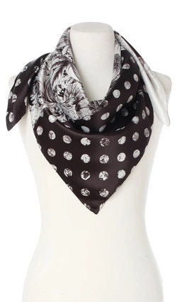 czarno biała Chusta w kwiaty i grochy Apaszka Włoska 90x90 elegancka