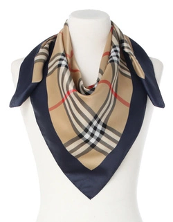 Klasyczna beżowa chusta włoska apaszka elegancka w kratkę na piękny prezent Ornament 90x90cm Made in Italy