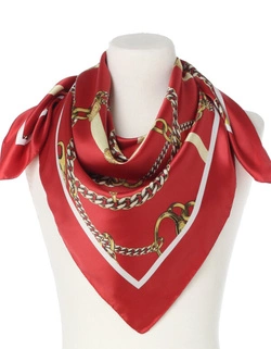 Klasyczna czerwona chusta włoska w łańcuchy apaszka elegancka na piękny prezent 90x90cm Made in Italy