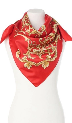 modna Apaszka Chusta Włoska na prezent 90x90cm czerwono złota