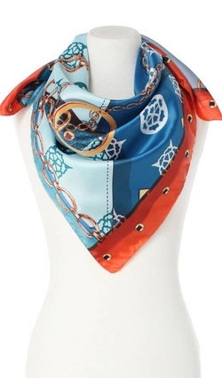 Lekka satynowa chusta produkcji włoskiej (metka). Oryginalne modne wzornictwo. Piękne nasycone kolory. Wysoka jakość wykonania.