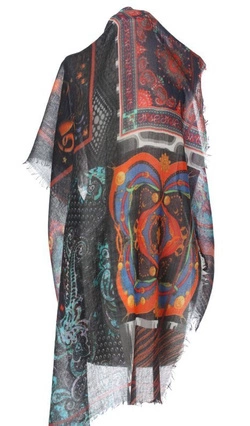 Piękny elegancki duży szal Laura Verdiani wykonany z cienko tkanej lekkiej wełny najwyższej jakości. Cyfrowy nadruk.