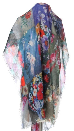 Ekskluzywny Wełniany Duży Szal Chusta Patchwork Kwiaty Premium Laura Verdiani 70x180cm