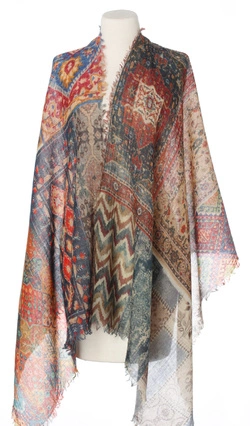 Piękny elegancki duży szal Laura Verdiani wykonany z cienko tkanej lekkiej wełny najwyższej jakości. Szal jest lekki, całoroczny. Cyfrowy nadruk.