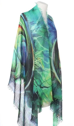 Piękny elegancki duży szal Laura Verdiani wykonany z cienko tkanej lekkiej wełny najwyższej jakości. Szal jest lekki, całoroczny. Cyfrowy nadruk.