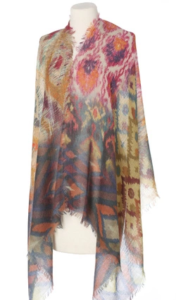 Piękny elegancki duży szal Laura Verdiani wykonany z cienko tkanej lekkiej wełny najwyższej jakości. Szal jest lekki, całoroczny. Cyfrowy nadruk.